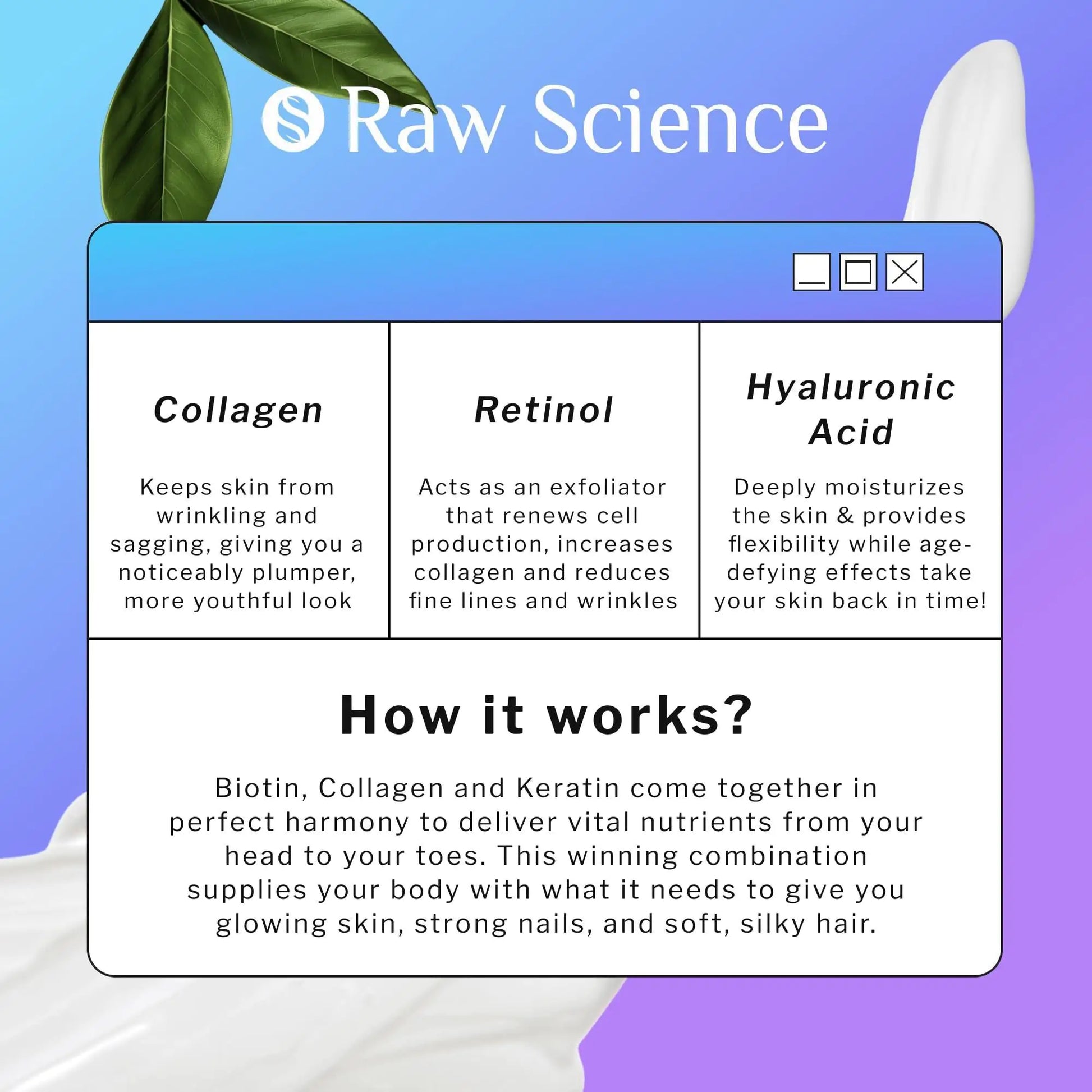MEN & WOMEN'S ANTI-WRINKLE CREAM: Whether youre looking for an anti-wrinkle cream, or collagen cream for forehead and face wrinkles, Raw Science is a brand you can trust.